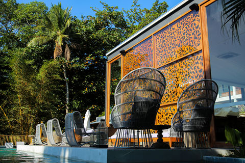 Experiência perfeita em uma área de mais de 15.000m², com direito à PISCINA DE BORDA INFINITA VISTA MAR, mata preservada e uma pequena extensão da CACHOEIRA do Veloso complementam o endereço do paraíso. Nossa arquitetura preserva e respeita a natureza.